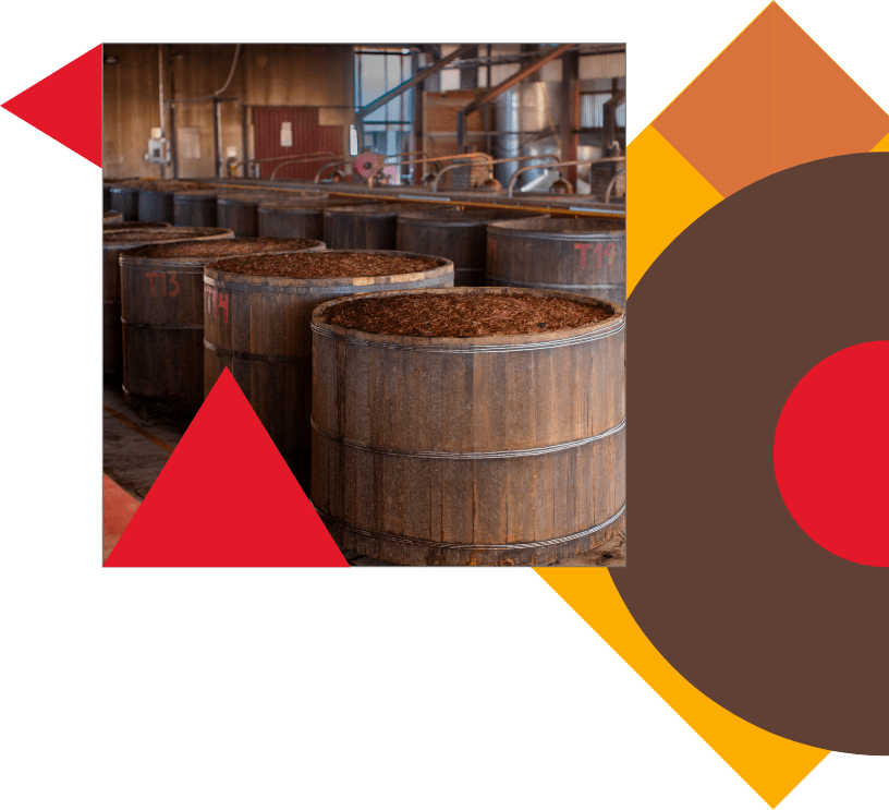 Posteriormente, se cuecen las piñas en hornos cónicos de piedra durante tres a cuatro días con madera de encino y pino, donde los almidones se descomponen químicamente hasta convertirse en azúcares cocidos, para así darle la sensación ahumada típica de un auténtico mezcal artesanal.